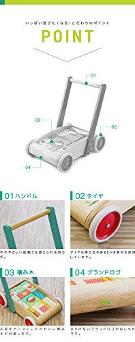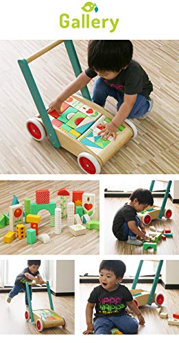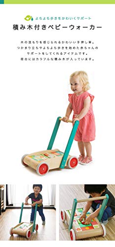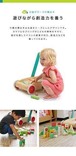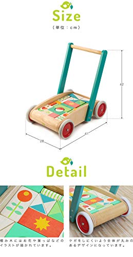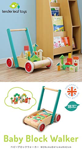 tender leaf toys 木製 積み木付き手押し車 かわいいイギリスデザインのベビーウォーカー 積み木 おもちゃ つかまり立ち 赤ちゃん 男の子 女の子 知育玩具