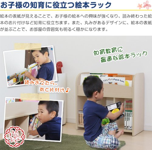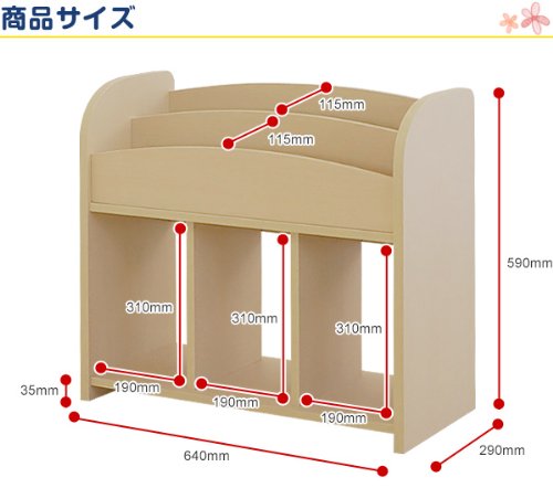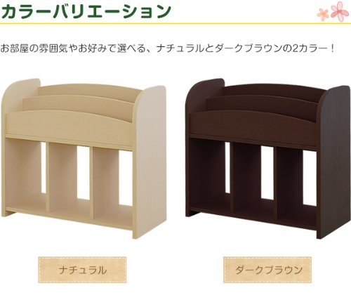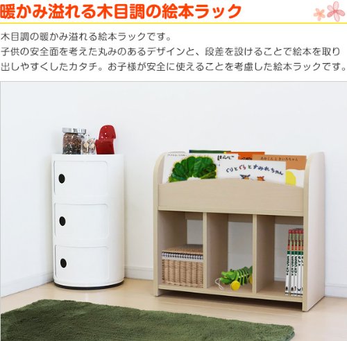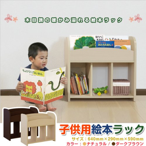 子供用絵本ラック 木目調 (キッズブックシェルフ) 約64cm×29cm×59cm 【収納に便利な仕切り棚付き】 (ナチュラル)