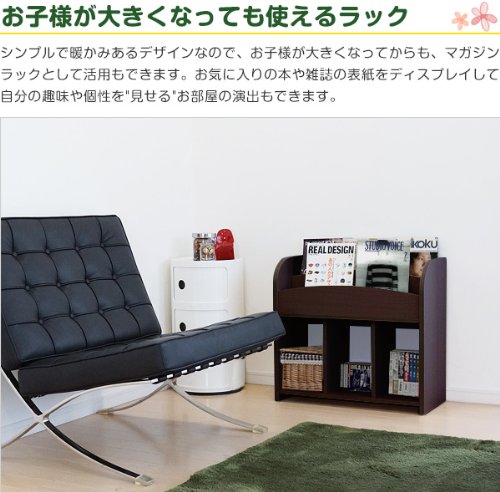 絵本ラックの表面は、暖かみ溢れる優しい木目調。