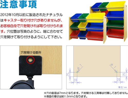 - ※2012年10月以前に製造されたナチュラルはキャスター取り付け穴がありませんが、お客様自身で穴を開ければ取り付けられます。