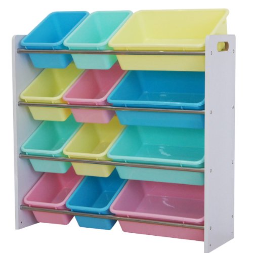 4色のカラフルなケースにお片づけ!お子さんも大喜び、おもちゃ収納ラック!