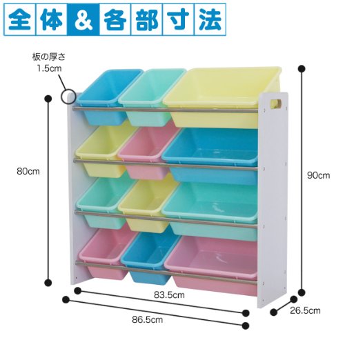 そしてお子さん一人でも楽しくお片づけしたくなるようなポップでかわいいデザインのオモチャ収納ラックです。