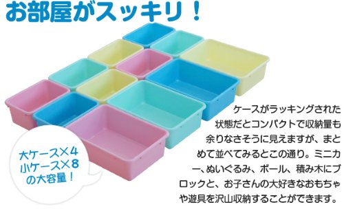4色のケースにおもちゃの種類ごとに分別しながら収納すれば、片付けまでも楽しい遊びになるはずです。
