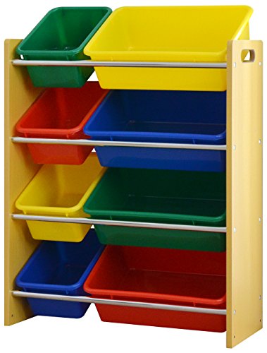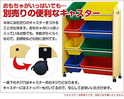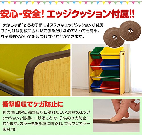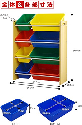 ottostyle.jp おもちゃラック おかたづけ収納ラック スリム4段 エッジクッション付き 【ナチュラル×カラフルボックス】 幅66m おもちゃ箱 おもちゃ収納 トイラック トイボックス