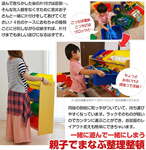 4色のカラフルなケースにお片づけ!お子さんも大喜び、おもちゃ収納ラック!