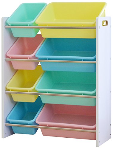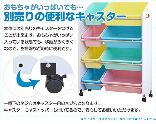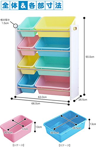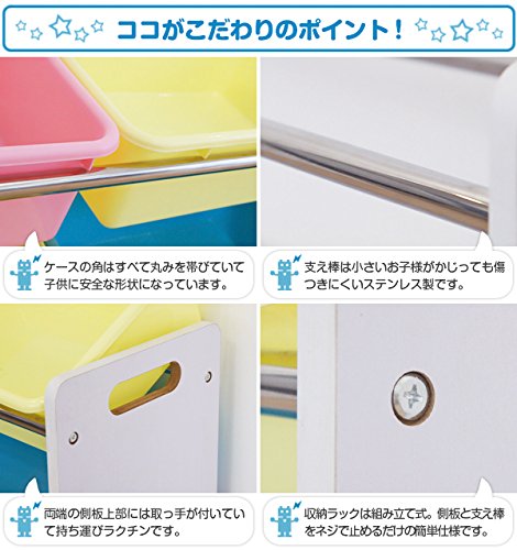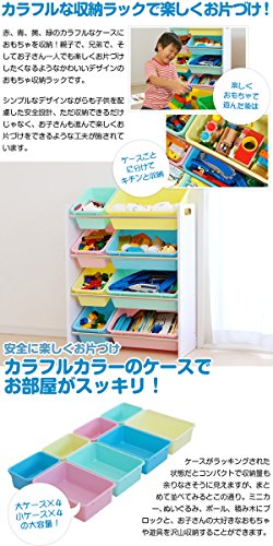 ottostyle.jp おもちゃラック おかたづけ収納ラック スリム4段 エッジクッション付き 【ホワイト&パステルカラーボックス】 幅66m おもちゃ箱 おもちゃ収納 トイラック トイボックス