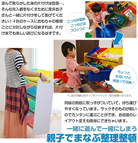 4色のカラフルなケースにお片づけ!お子さんも大喜び、おもちゃ収納ラック!