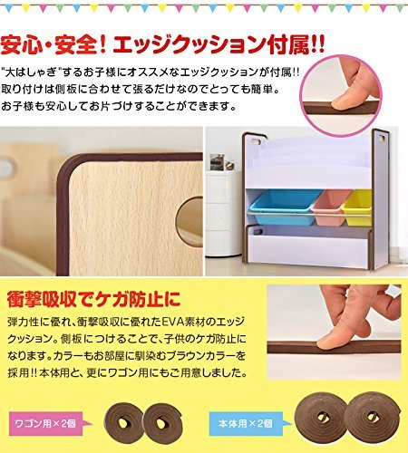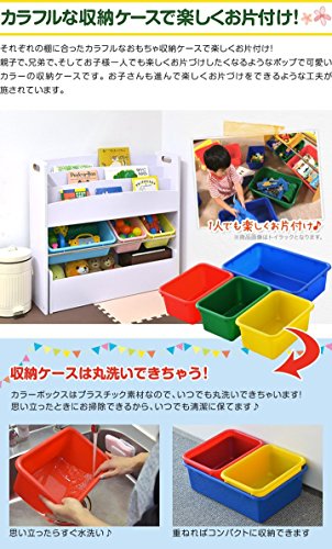 ottostyle.jp 絵本棚付おかたづけ収納ラック エッジクッション付き 【ナチュラル×カラフルボックス】 幅86.5cm ワゴン付き おもちゃ箱 おもちゃ収納 トイラック トイボックス マガジンラック おもちゃラック 本棚