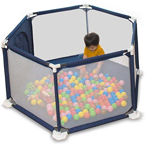 ottostyle.jp 洗える ソフト ベビーサークル 【ネイビー】 軽量 倒れにくい 安全設計 ファスナー 扉 簡単組み立て 収納 六角形
