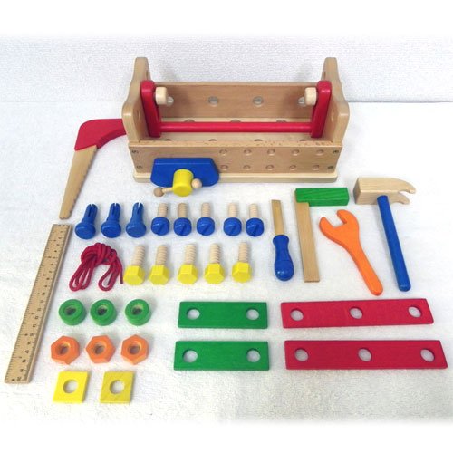 台湾の木製玩具メーカーGogo Toys(ゴーゴートイズ社)の工具箱付きの木製工具セットです。子どもたちが大好きな大工さんごっこ♪ 木製のネジ、ナットやスパナやドライバー、トンカチやのこぎりなどが沢山ついてます! 工具箱は、逆さまにすると作業台になります。 工具を上手に使って、工夫して遊んでみましょう。 何回もはずしたり、はめたり、はずしたり、はめたり。。。 まわしてねじ込むという遊びを通じて、手先の器用さを養います。 上手に出来たら、ほめてあげて下さいね。 そうすることで、どんどん自信がでて、他のことにも挑戦するようになります。 トンカチで叩いたり、ネジを回したり気分はすっかり大工さん。 大工さんごっこをいっぱい楽しみましょう♪ 【■Gogo Toys(ゴーゴートイズ社)について】 品質の高いおもちゃを40年以上製造している台湾の木製玩具メーカーです。 幼児教育の専門知識を持ったスタッフが作るこだわりの『知育』を目的とした木のおもちゃは、ドイツやフランス、イギリス、北欧、アメリカやオーストラリアなど世界各国で高い評価を受けています。 おもちゃの木製部分はヨーロッパから輸入した品質の高いブナ・カエデ・カバの木が使用され、塗料は安全性の高いドイツ製の水性塗料を使用しています。 品質面はもちろんのこと、デザイン賞を受賞したおもちゃも生み出しています。 ゴーゴートイズ社のこだわりの木製知育玩具は、全ての製品はEN-71(ヨーロッパ)、ASTM(北米)の基準を満たしています。