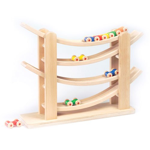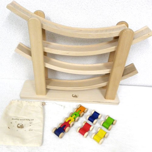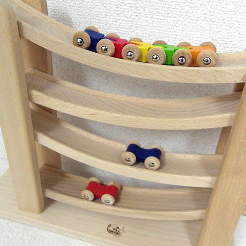 台湾の木製玩具メーカーGogo Toys(ゴーゴートイズ社)の可愛い車の木製スロープトイです。スロープのサーキットをカコンカコンと車が降りて行きます! 5つの車が連結した車の他、車が5台セットです。車を入れる収納袋付き! ころがる・落ちる・走る。スロープトイは子どもが大好きな動きのあるおもちゃ。 クルマが滑り落ちる様子に子どもたちは大興奮!繰り返し何度も遊べます。 子どもの発達で大切な要素のひとつに「注目・追視」があります。 動きのあるおもちゃは「注目・追視」の発達の手助けにピッタリです。 【■Gogo Toys(ゴーゴートイズ社)について】 品質の高いおもちゃを40年以上製造している台湾の木製玩具メーカーです。 幼児教育の専門知識を持ったスタッフが作るこだわりの『知育』を目的とした木のおもちゃは、ドイツやフランス、イギリス、北欧、アメリカやオーストラリアなど世界各国で高い評価を受けています。 おもちゃの木製部分はヨーロッパから輸入した品質の高いブナ・カエデ・カバの木が使用され、塗料は安全性の高いドイツ製の水性塗料を使用しています。 品質面はもちろんのこと、デザイン賞を受賞したおもちゃも生み出しています。 ゴーゴートイズ社のこだわりの木製知育玩具は、全ての製品はEN-71(ヨーロッパ)、ASTM(北米)の基準を満たしています。