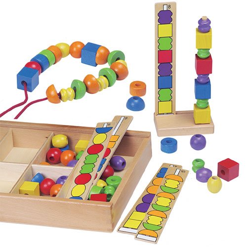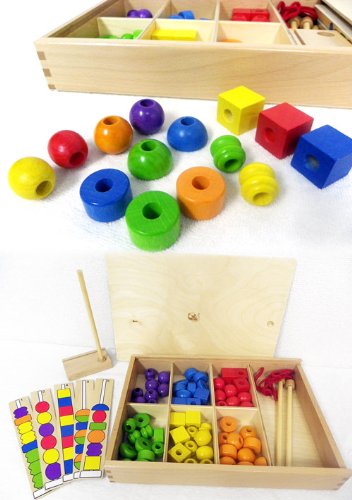 台湾の木製玩具メーカーGogo Toys(ゴーゴートイズ社)のひも通しとマッチングゲームが楽しめる木製ビーズセットです。 ひも通しを楽しんだり、パターンカードに合わせて、木製ビーズを棒に通して遊んだり、指先を使う遊び存分に楽しめます! パターンカードは全部で5枚入りで、裏表あわせて10パターンあります。 遊びながら、手先・指先の運動の促進や、考える力や問題解決のスキルが発達します。 付属品は、木箱に全部入るのでお片づけも楽ちんです♪ 幼稚園・保育園などの保育施設にもオススメな木製知育玩具です。 【■Gogo Toys(ゴーゴートイズ社)について】 品質の高いおもちゃを40年以上製造している台湾の木製玩具メーカーです。 幼児教育の専門知識を持ったスタッフが作るこだわりの『知育』を目的とした木のおもちゃは、ドイツやフランス、イギリス、北欧、アメリカやオーストラリアなど世界各国で高い評価を受けています。 おもちゃの木製部分はヨーロッパから輸入した品質の高いブナ・カエデ・カバの木が使用され、塗料は安全性の高いドイツ製の水性塗料を使用しています。 品質面はもちろんのこと、デザイン賞を受賞したおもちゃも生み出しています。 ゴーゴートイズ社のこだわりの木製知育玩具は、全ての製品はEN-71(ヨーロッパ)、ASTM(北米)の基準を満たしています。