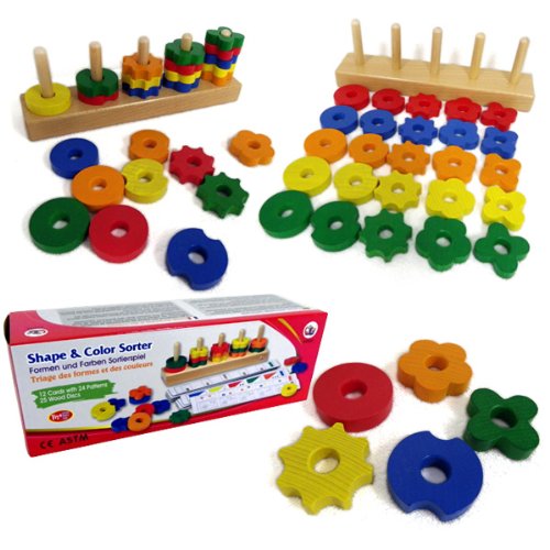 台湾の木製玩具メーカーGogo Toys(ゴーゴートイズ社)の色と形のお勉強ができる知育玩具です。 パターンカードに合わせて形ごと、色ごとに分けて遊びます。 形と色を認識し分別する力を養います。 カードは12枚で裏表に印刷してあり、6×4で24パターンあります。 木製パーツは、5種類の形で、5色の合計25個セットになっています。 木製パーツを棒に通すことで、遊びながら、手先・指先の運動も促進させます。 幼稚園・保育園などの保育施設にもオススメな木製知育玩具です。 【■Gogo Toys(ゴーゴートイズ社)について】 品質の高いおもちゃを40年以上製造している台湾の木製玩具メーカーです。 幼児教育の専門知識を持ったスタッフが作るこだわりの『知育』を目的とした木のおもちゃは、ドイツやフランス、イギリス、北欧、アメリカやオーストラリアなど世界各国で高い評価を受けています。 おもちゃの木製部分はヨーロッパから輸入した品質の高いブナ・カエデ・カバの木が使用され、塗料は安全性の高いドイツ製の水性塗料を使用しています。 品質面はもちろんのこと、デザイン賞を受賞したおもちゃも生み出しています。 ゴーゴートイズ社のこだわりの木製知育玩具は、全ての製品はEN-71(ヨーロッパ)、ASTM(北米)の基準を満たしています。