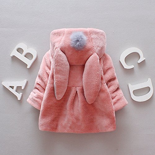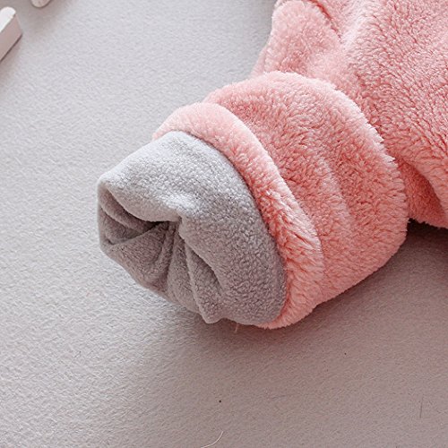 サクララ(Sakulala)ベビー服 ワンピース 子ども服 ふわふわ 着ぐるみ 秋冬 長袖 防寒 ベビー服 暖かい フード付き ウサギ 耳 男女兼用 (90, ピンク)