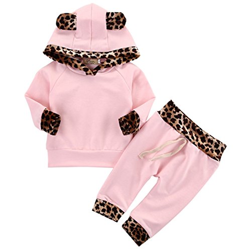 サクララ(Sakulala) ベビー服 女の子 上下セット キッズ 赤ちゃん シャツ+パンツ クマ耳付き フード付き クラ ピンク かわい 長袖 秋 出産祝い (90)