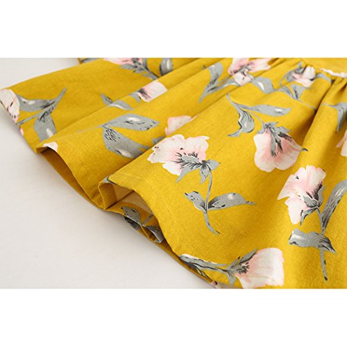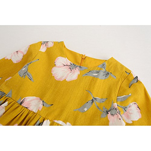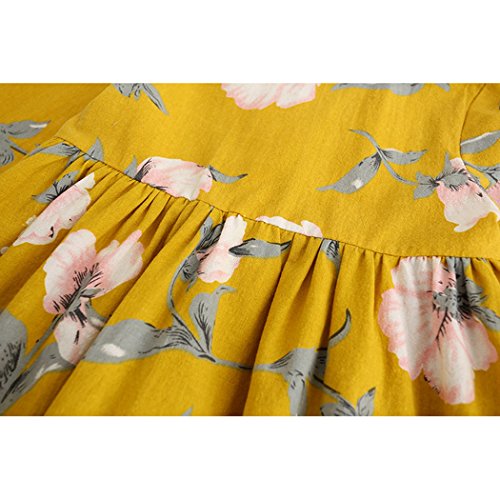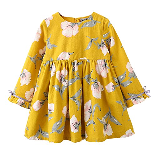 サクララ(sakulala)ワンピース ドレス 花柄 女の子 長袖 ワンピース チュニック 長袖 リボン付き 春 秋 冬 通園 通学 キッズ 膝丈 上着 (110, イェロー)