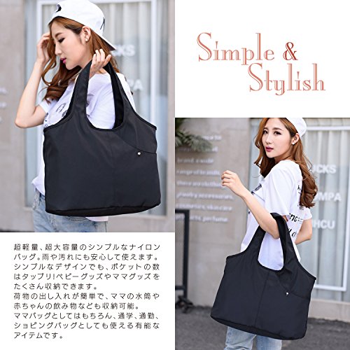 MAX World マザーズバッグ トートバッグ 超軽量 大容量 防水 ナイロン レディース シンプル a4サイズ ママバッグ ベビー用品収納 (ブラック)