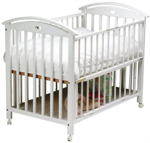 優しいフォルムとうれしい機能性。かわいい白いベビーベッド