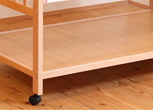床から寝台上まで約75cm、敷布団上だと約80cmあるので、赤ちゃんのおむつ替えや抱き起こすにもとっても楽な高さです。敷布団を敷いた場合、敷布団の上と一番下まで下げた手すりがフラット(ほぼ同じ高さ)だから、赤ちゃんの着替え、おむつ交換するのに柵が邪魔になりません。(床板上段で使用の場合)床板は国産ひのきのスノコです。通気性がよく、むく材なので赤ちゃんの汗でたわむこともなく、ひのきの香りで赤ちゃんもリラックス。(ひのきは岡山、広島産)床から荷物棚までのすき間が12㎝あるので、お掃除ロボットも通れます。ベッド下の収納は、扉がないのでどこからでも出入れがカンタン!!