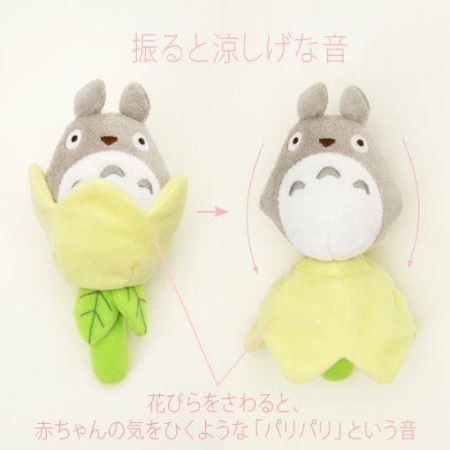 ゜*:・☆となりのトトロのベビーグッズ☆*:・゜トトロがお花からひょっこり顔を出してこんにちは。ぬいぐるみのようなベビーおもちゃ(がらがら)です。振ると涼しげな音が鳴り、花びらをさわると、赤ちゃんの気をひくような「パリパリ」という音がします。
