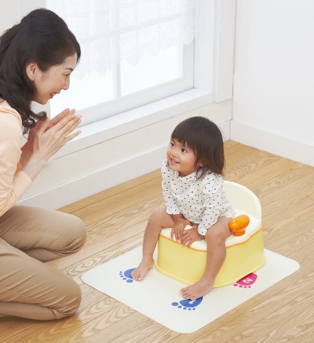 ●【商品説明】●「トイレトレーニング オマルマット」は、カテキン入りでアンモニア臭の消臭効果がある、おまる用品です。●トイレトレーニング用の足型付き。●撥水加工で汚れが落としやすく、お手入れが簡単。●マットの裏面が、床にピタッと吸着するのでズレません。●ハサミで手軽にカットできます。●カットしてもほつれません。●汚れても洗濯機で丸洗いできます。●床の傷つきや汚れを防ぎます。●床暖房にも使用できます。●【使用方法】●(1)床のホコリ、水等をよく拭きとってください。●(2)裏面のフィルムをはがしてください。●(3)床面に吸着するようにマットを手で押さえてください。●【ご注意】●マットをはがした後、床面がすべりやすくなる場合がありますので、その場合は弱アルカリ性洗剤またはアルカリ性洗剤をうすめた物を使用し雑巾で拭きとってください。●植物性石けん・固形石けん・純石けんをご使用されてのお洗濯の場合は、すすぎをしっかりとしてください。●また、漂白剤および柔軟剤は使用しないでください。●ドラム式洗濯機でもお洗濯していただけますが、シワ・形くずれ・縮みの原因となりま...