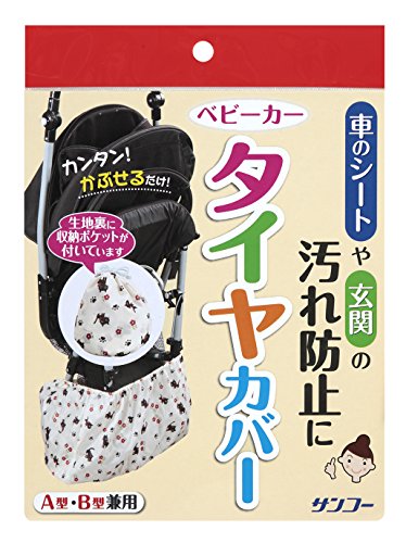 ベビーカーのタイヤにカバーをつけて、車内や玄関などが汚れるのを防ぎます。
