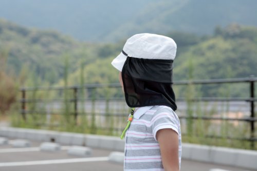 帽子の上から取り付けるだけで、耳元からえり首を紫外線から守ります。