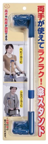 ベビーカーやシルバーカーに取り付ける傘スタンド。高さや角度も変えられます。 両手が使えて便利です。