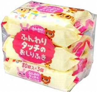 ノンアルコール・無香料 ふんわりタッチのおしりふき 80枚×3コパック 24入り(2合せ)