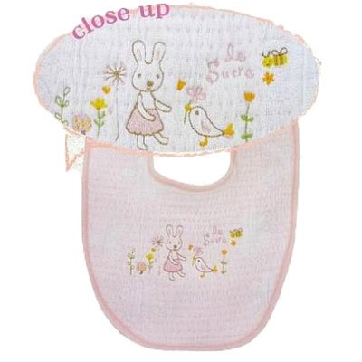 le SucreからBaby Goodsシリーズの登場です! 淡いピンク色でふちどりされたかわいいスタイ。 ふわっふわの手触りでベビーも気持ち良く使ってくれそうです♪ 白い花柄のスタイにはうさぎさんと小鳥が刺しゅうされています。