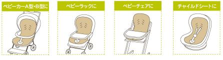 ベビーカー、ベビーラック、ベビーチェア、チャイルドシートなど様々なアイテムに利用できるマルチなクッション