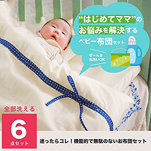 ◆先輩ママたちの"ズバリな本音"をカタチにしたら、機能的で無駄のないお布団セットができました!ママのコエ01:使わないものはいらない!お金も収納スペースももったいない! →必要最小限なアイテムをチョイス!シンプルなお布団セットです。ママのコエ02:お布団は毎日使うもの!欲を言えば全部洗いたい! →カバーもお布団も固綿マットも全部洗えます!ママのコエ03:品質に心配がないと、赤ちゃんだけじゃなく、ママも安心できる! →日本製の技術と無添加ガーゼで作る、こだわりの安心品質。◆セット内容1. 掛カバー約90×120cm綿100%(無地生成り部分には無添加のダブルガーゼを使用)2. ヌード掛ふとん約85×125cm側地:ポリエステル100% 詰めもの;ポリエステル100%3. フィッティングシーツ約70×120cm綿100%(無添加ダブルガーゼ)4. 洗える固綿マット約70×120×2.5cm(2枚入り)側地:ポリエステル100% 詰めもの:ポリエステル100%5. 王冠まくら約26×20cm側地:綿100% 詰めもの:ソフトチューブ(ポリエチレン)◆生産国:日本◆すべてご家庭でお洗濯可能です