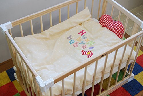 赤ちゃんのお気に入りのおもちゃなどを入れられるポケット付き・防水シーツは蒸れにくい透湿防水タイプ