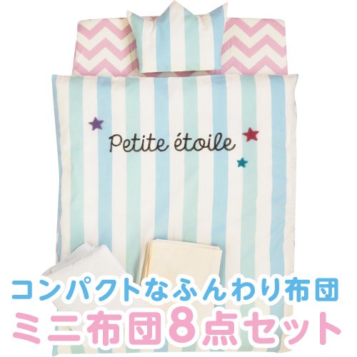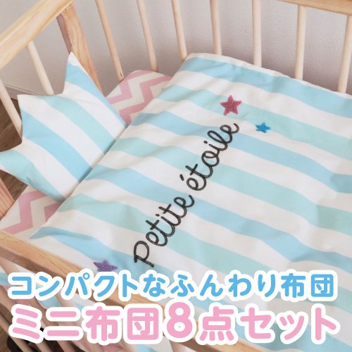 サンデシカ 洗えるミニ布団8点セット プチエトワール【日本製】 + キルトパッド・防水シート【日本製】付 《合計10点セット》