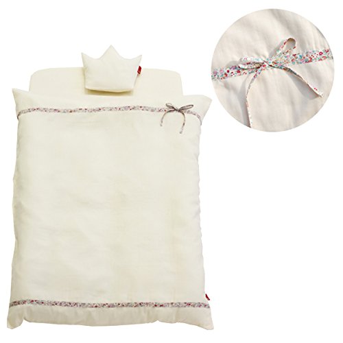 - ■セット内容とサイズ 1.掛けカバー 約90×120cm 2.ヌード掛布団 約85×115cm 3.フィットシーツ 約70×120cm 4.洗える固綿マット 約70×120×2.5cm×2 5.王冠まくら 約25×25cm 6.キルトパッド 約70×120cm 7.防水シーツ 約70×120cm