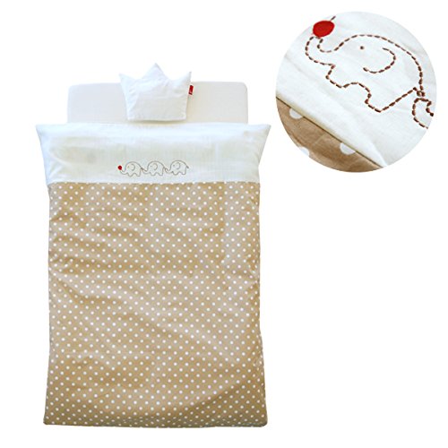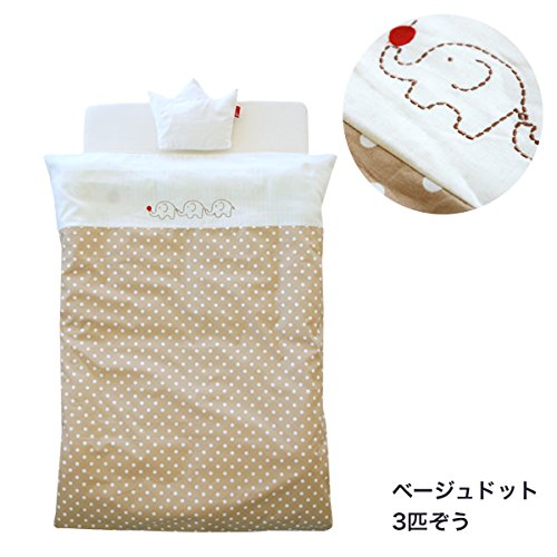 サンデシカ 洗えるベビー布団7点セット 必要最小限アイテムをチョイス_ベージュドット3匹ぞう 【日本製】