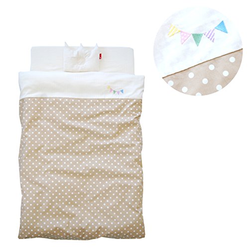 サンデシカ 洗えるベビー布団7点セット 必要最小限アイテムをチョイス_ベージュドットフラッグ 【日本製】