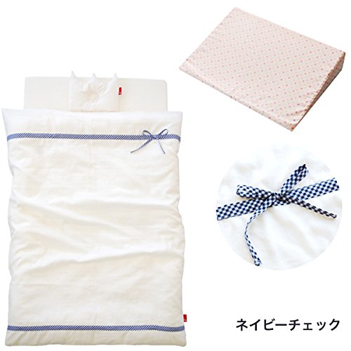 サンデシカ スリーピングピロー付☆洗えるベビー布団 合計8点セット 必要最小限アイテムをチョイス_ネイビーチェック 【日本製】