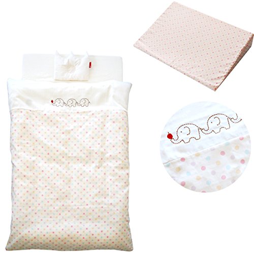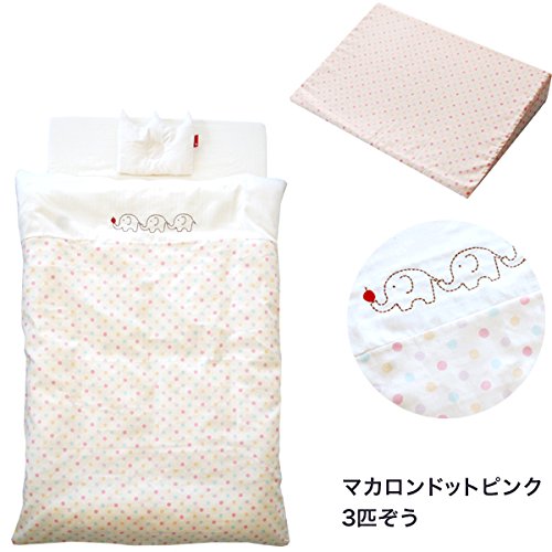 サンデシカ スリーピングピロー付☆洗えるベビー布団 合計8点セット 必要最小限アイテムをチョイス_マカロンドットピンク3匹ぞう 【日本製】