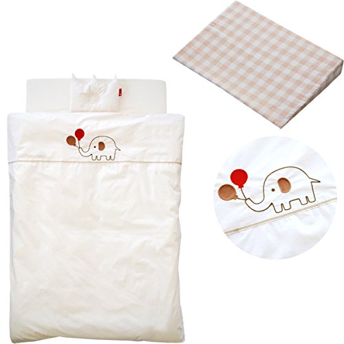 - ■セット内容とサイズ 1.掛けカバー 約90×120cm 2.ヌード掛布団 約85×115cm 3.フィットシーツ 約70×120cm 4.洗える固綿マット 約70×120×2.5cm×2 5.王冠まくら(チューブチップ) 約26×20cm 6.キルトパッド 約70×120cm 7.防水シーツ 約70×120cm 8.スリーピングピロー 約35×50×7cm