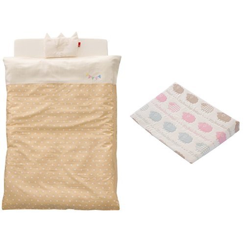 【セット買い】 サンデシカ ベビー布団 はじめてママのお悩みを解決する ベビー布団5点セット フラッグベージュドット + 6重ガーゼスリーピングピロー