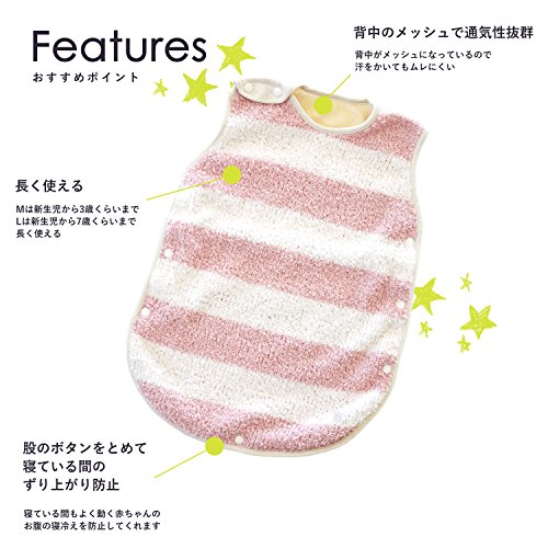 ・背中部分は汗ばんでもべとつき感が少なく、速乾性に優れたメッシュ素材を使用しています。・肌触りが柔らかでソフトなボア素材を使用、柔らかく着心地が良いのが特徴です。・股のボタンを留めてずり上がるのを防止します。・新生児から7歳頃まで長く使えます。