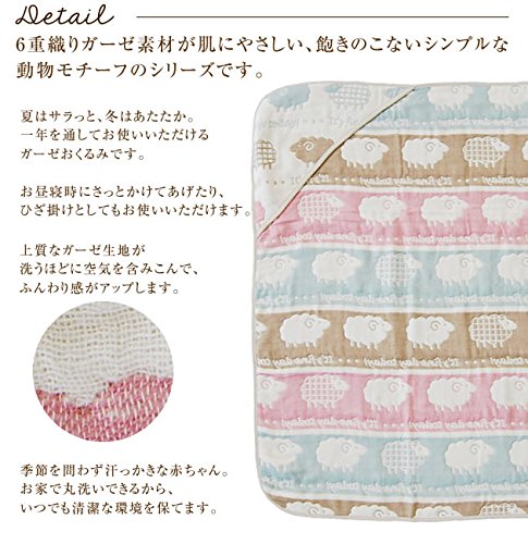 備考:☆上質なガーゼ生地が洗うほどに空気を含みこんで、ふんわり感がアップします。6重織りガーゼ素材が肌にやさしい、飽きのこないシンプルな動物モチーフのシリーズです。