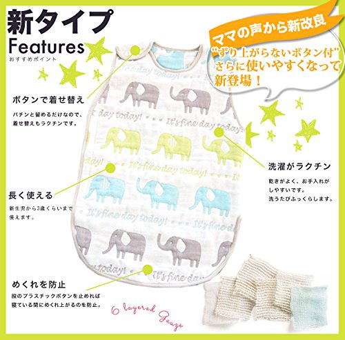 サンデシカ 6重ガーゼ スリーパー(L) ぞう【日本製】【2歳~7歳頃】【洗うたびふわふわ】 3305-9999-04
