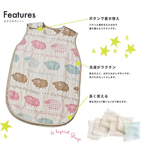 【ベビー ジュニア 2way 6重ガーゼスリーパー サロペット ガウン 寝巻き ベスト ベビーウエア 出産祝い 誕生日 日本製 4ヵ月~6・7歳のお子様向け】6重織りガーゼのスリーパー Lサイズ です。 国産 6重織ガーゼのスリーパーは、一度お洗濯すると、空気を含んでふわっと柔らかになります。赤ちゃんにもやさしい触り心地です。 寝冷えもしっかり予防し汗もしっかり吸収します。 産まれたときから7歳くらいまで長く使えます!