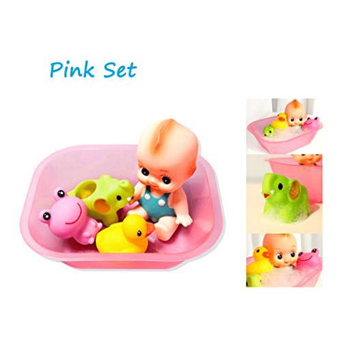 Sun Baby 5pcs Bath Toys Set Soft Rubber Water Squirts with"Baby Doll" and Float Boat Bathtub Toy Set,Great Shower Gifts for Baby [並行輸入品]