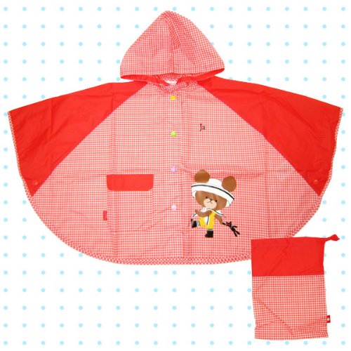 子供レインポンチョ 【レインコート】 100cm レッド ギンガム くまのがっこう