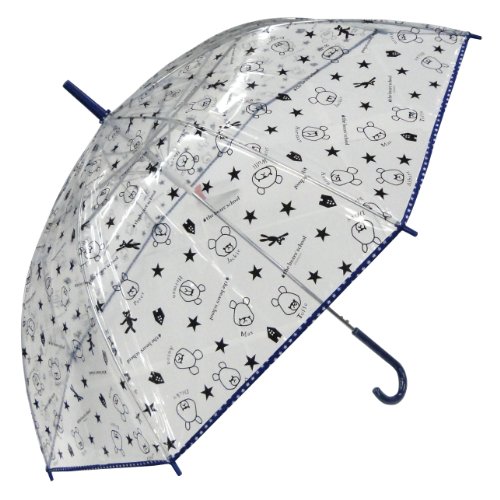 サンマルコ 傘 くまのがっこう ビニール総柄 ネイビー 親骨60cm ジャンプ式