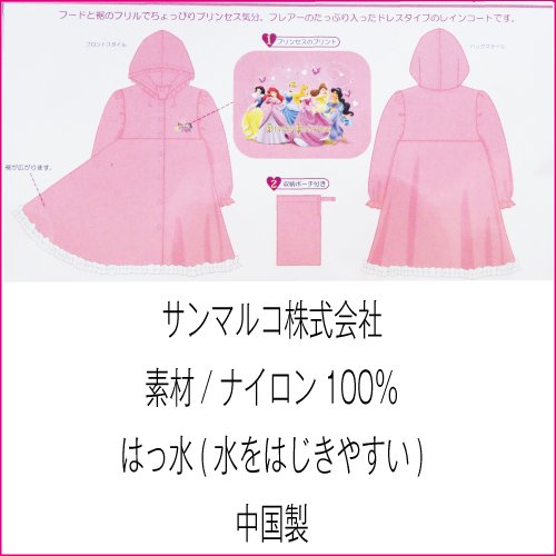 DISNEY PRINCESS ディズニープリンセス子供用レインコート 収納バッグ付 ピンク -100cm