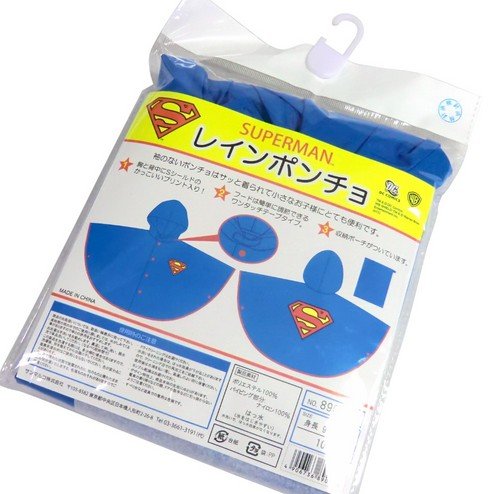 『スーパーマン』アメリカDCコミックを原作とした映画・アニメ・ドラマなどの作品に登場する胸のSシールドマークと赤いマントでおなじみのヒーローです。 スーパーマンの子供用のレインポンチョです。 胸と背中にSシールドマークのシルクプリント入り。 縁周りのパイピングが効いています。 お揃いの収納ポーチ付き。 商品の内容が一目でわかる商品説明台紙付きです。 <仕様> 前:中央スナップボタン留め フードにサイズ調整用のバンド付き *お揃いの子供傘もあります* サイズ別・適応身長 100: 95cm~105cm